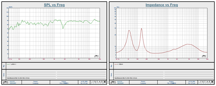 單元組成 Drivers LF:4.5",Voice-coil:1"/HF:1*1",Voice-coil:1" 頻率響應(yīng)(±3dB) Frequency(±3dB) 75-20000Hz 靈敏度(1M、1W) Sensitivity(1M、1W) 88dB 最大輸入聲壓級(jí) Maximum SPL 101dB 額定阻抗 Nominal Impedance 8 ohm 功率 Rated Power 50W /8 ohm